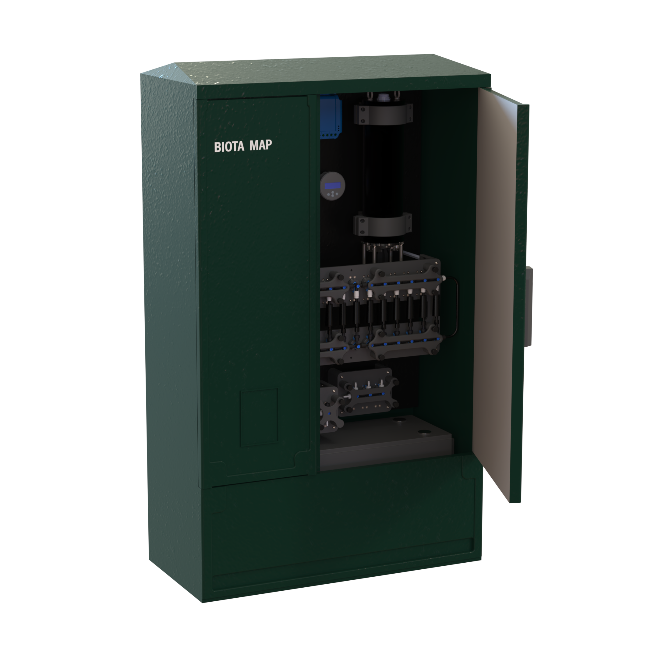 Biota MAP is a multi-sample monitoring system. Using adaptive triggering it is designed to capture biological and chemical samples from water. Up-to 12 water samples can be captured, filtered and preserved in response to trigger events, such as a sonde parameters. The MAP transforms biomonitoring from scheduled spot-checks into event-driven science. The Biota MAP web interface provides live system updates and notifications, such as when samples are ready to collect - see the MAP flyer for more information.